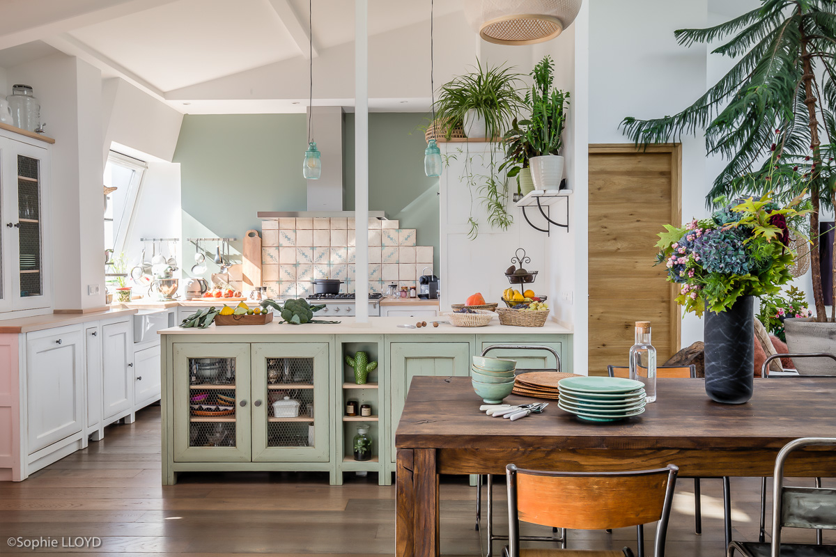 espace cuisine avec îlot et piano gastronome Lacanche .