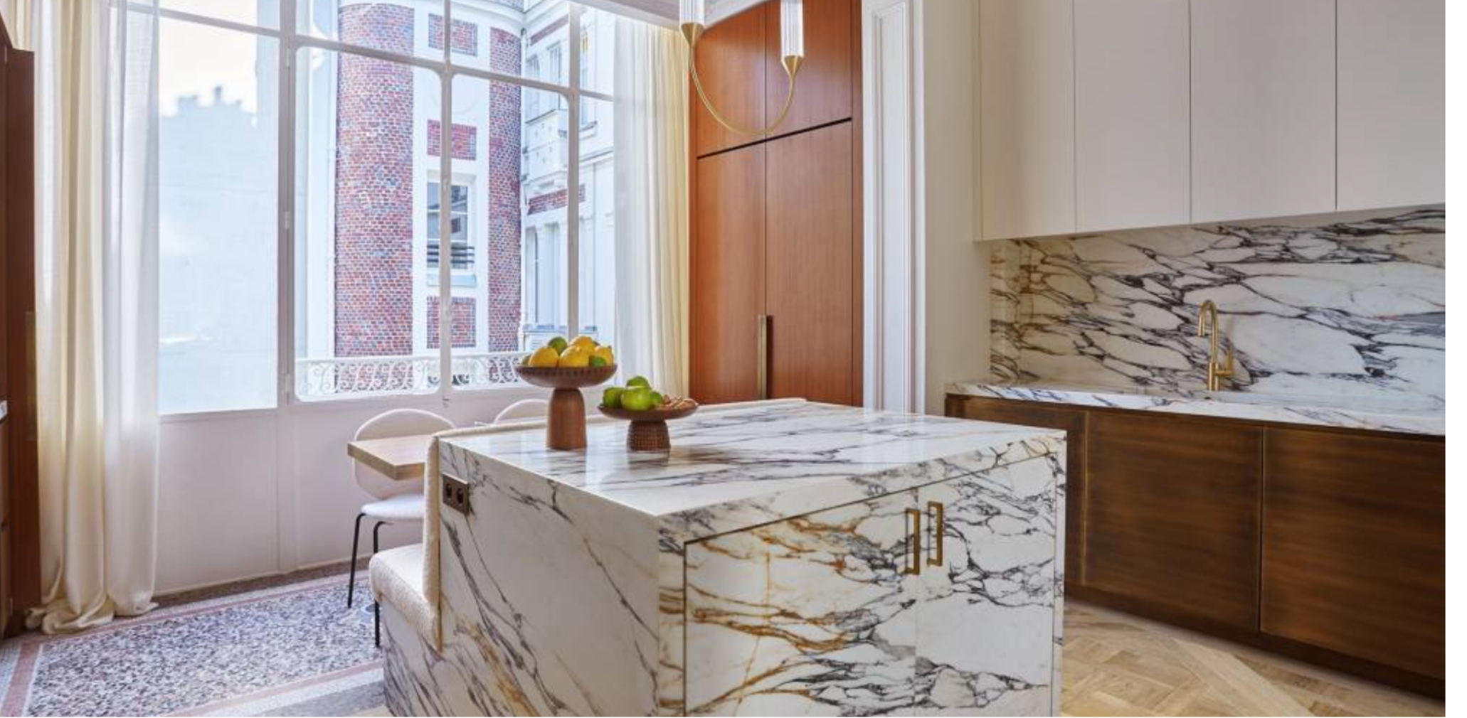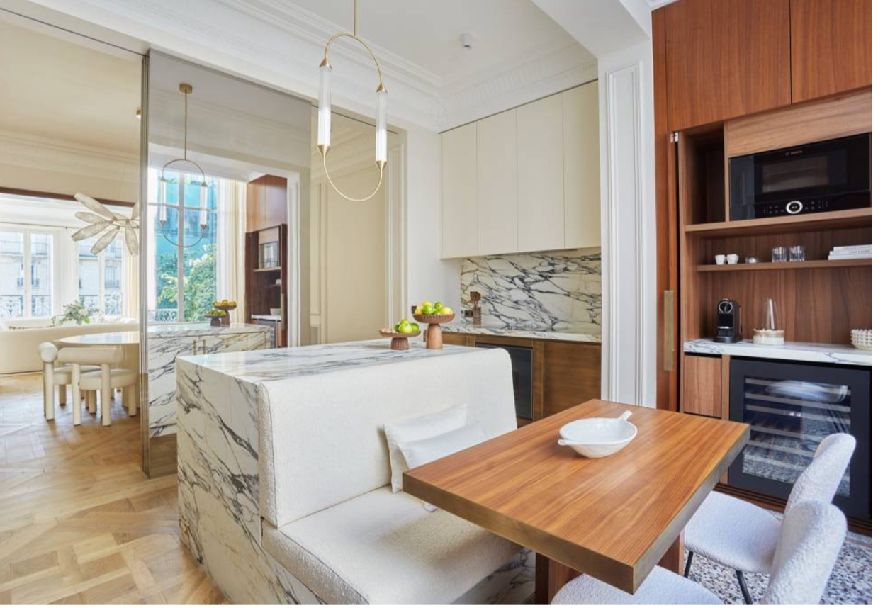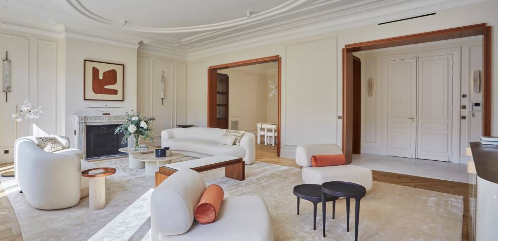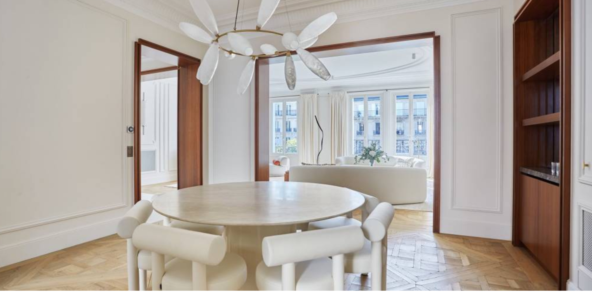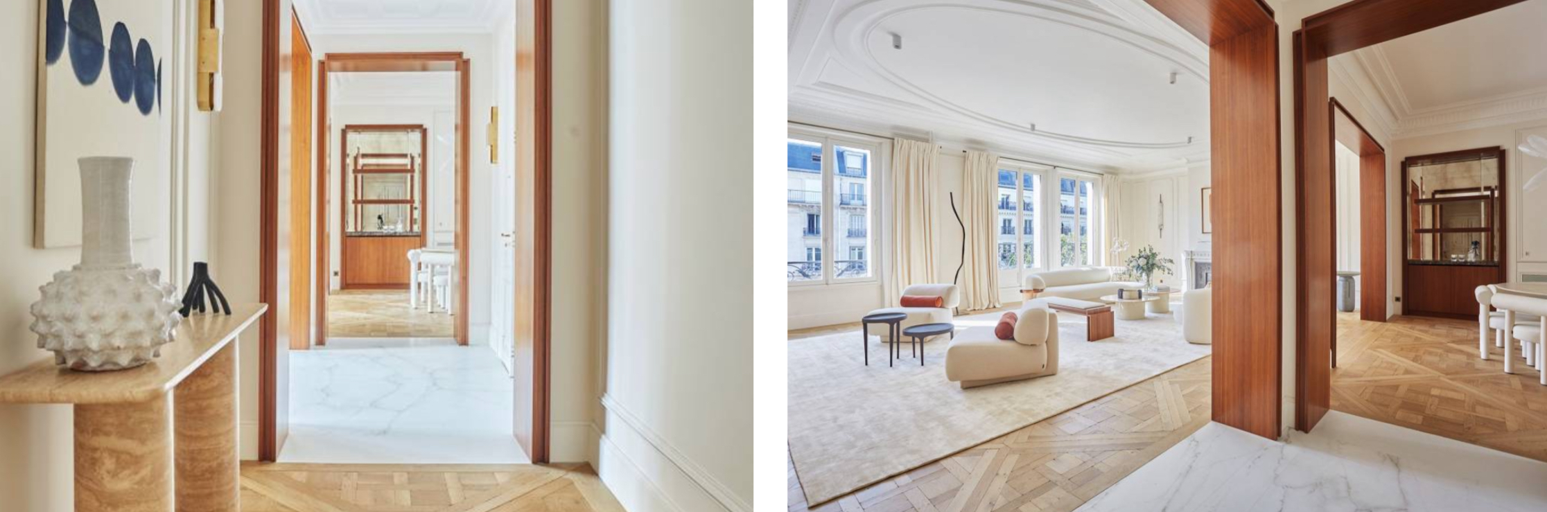 Cet appartement d’exception, situé à deux pas de l’Arc de Triomphe et des plus grands palaces parisiens, a été entièrement rénové et meublé par un architecte de renom.