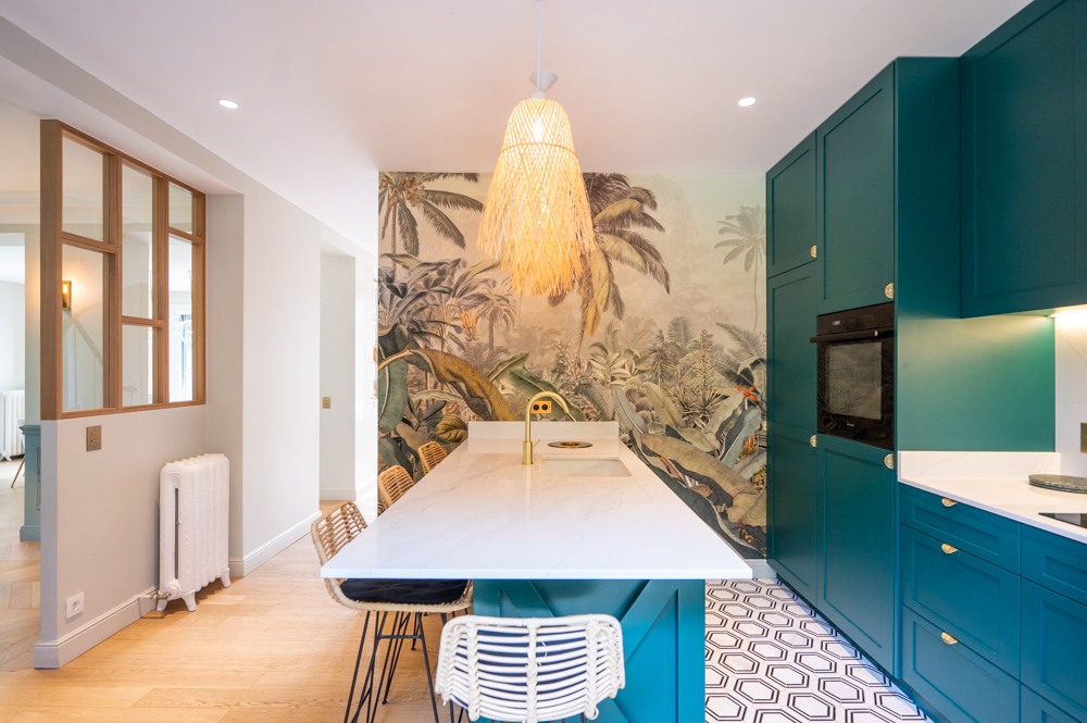 Une belle cuisine entièrement équipée, à la fois fonctionnelle et esthétique.