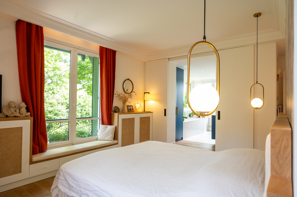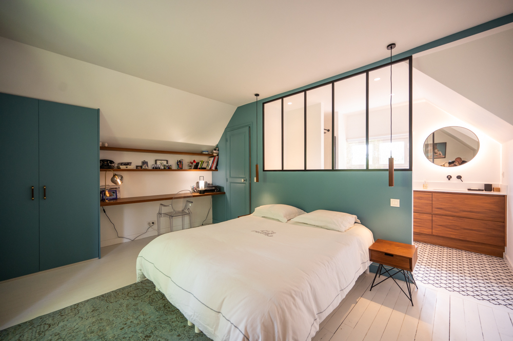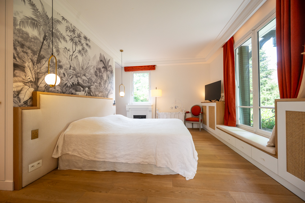 Une suite parentale avec salle de bain privative et dressing attenant.