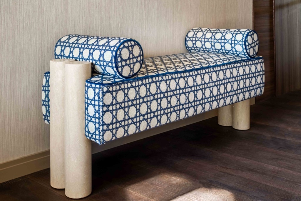 *Papier peint en galuchat Armani dans les chambres invités