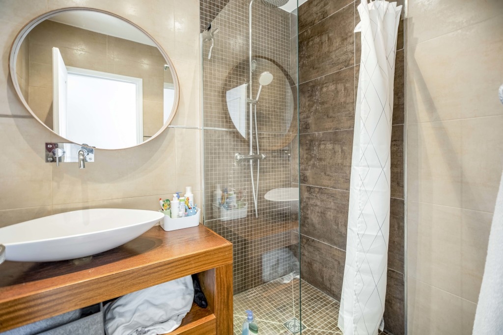 - 1 salle de bains avec baignoire balnéo d'angle,
